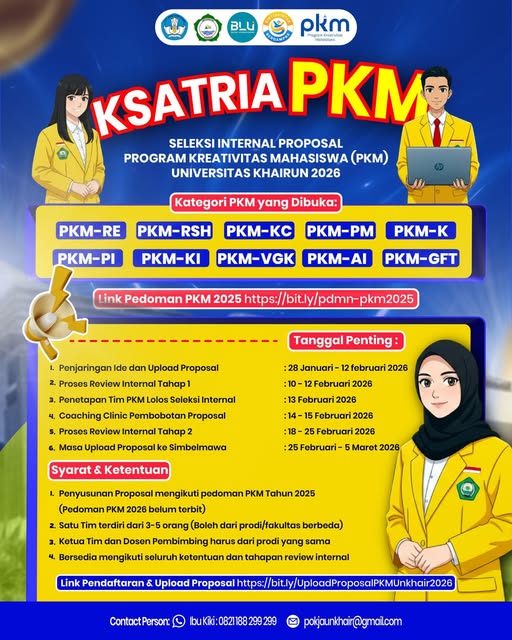 Internal Selection of Student Creativity Program (PKM) 2026! This is a golden opportunity for those who have innovative ideas to contribute in the development of science, technology and community empowerment.